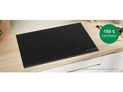 Les plaques de cuisson Bosch noires mates allient design épuré et fonctionnalités intelligentes. Grâce à la hotte intégrée, la vapeur et les odeurs disparaissent directement à la source, pour que votre cuisine reste fraîche et agréable. La surface mate en verre céramique est élégante, moins sensible aux traces de doigts et facile à nettoyer.