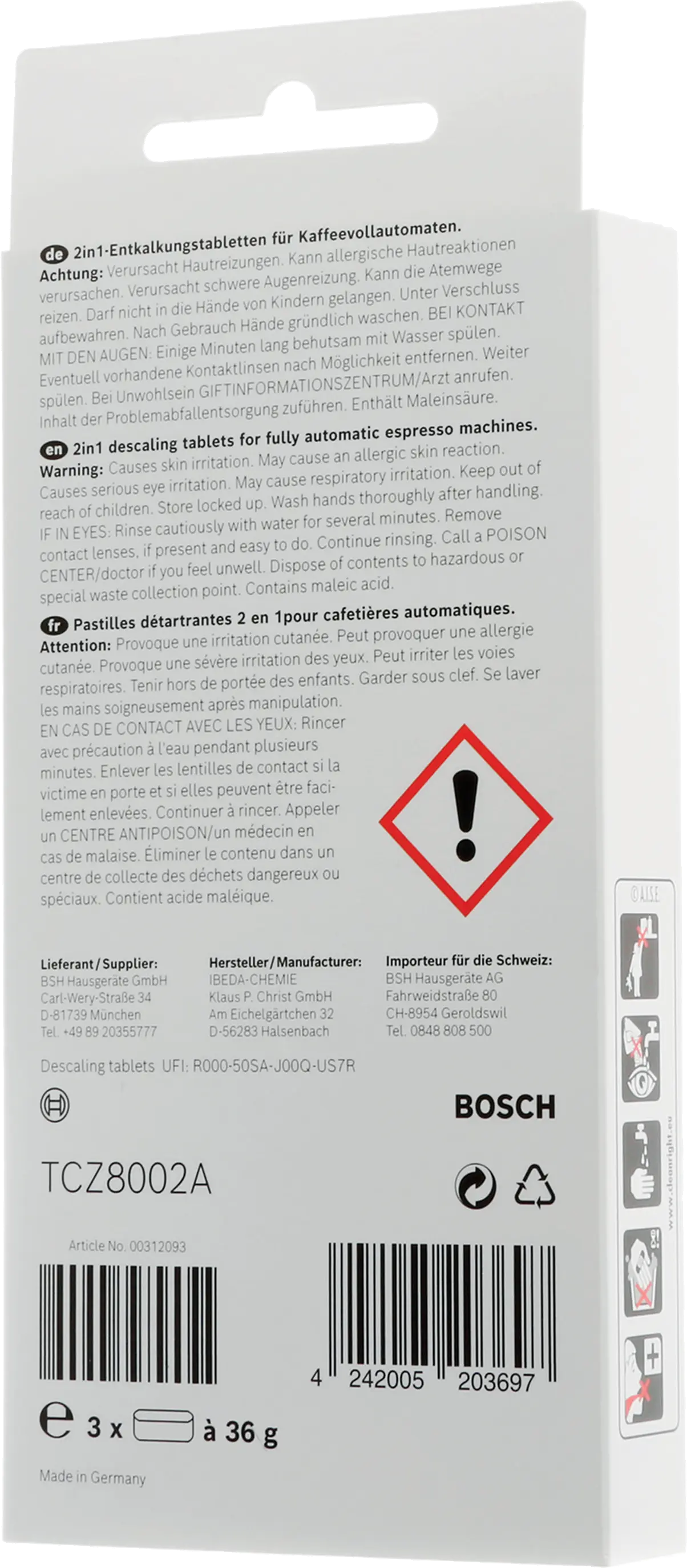 Tablettes détartrantes 2 en 1: Supprime le calcaire rapidement et facilement + protège votre appareil. Pour machine à espresso, cafetière ou bouilloire00312093 • TCZ8002ARemplacement pour