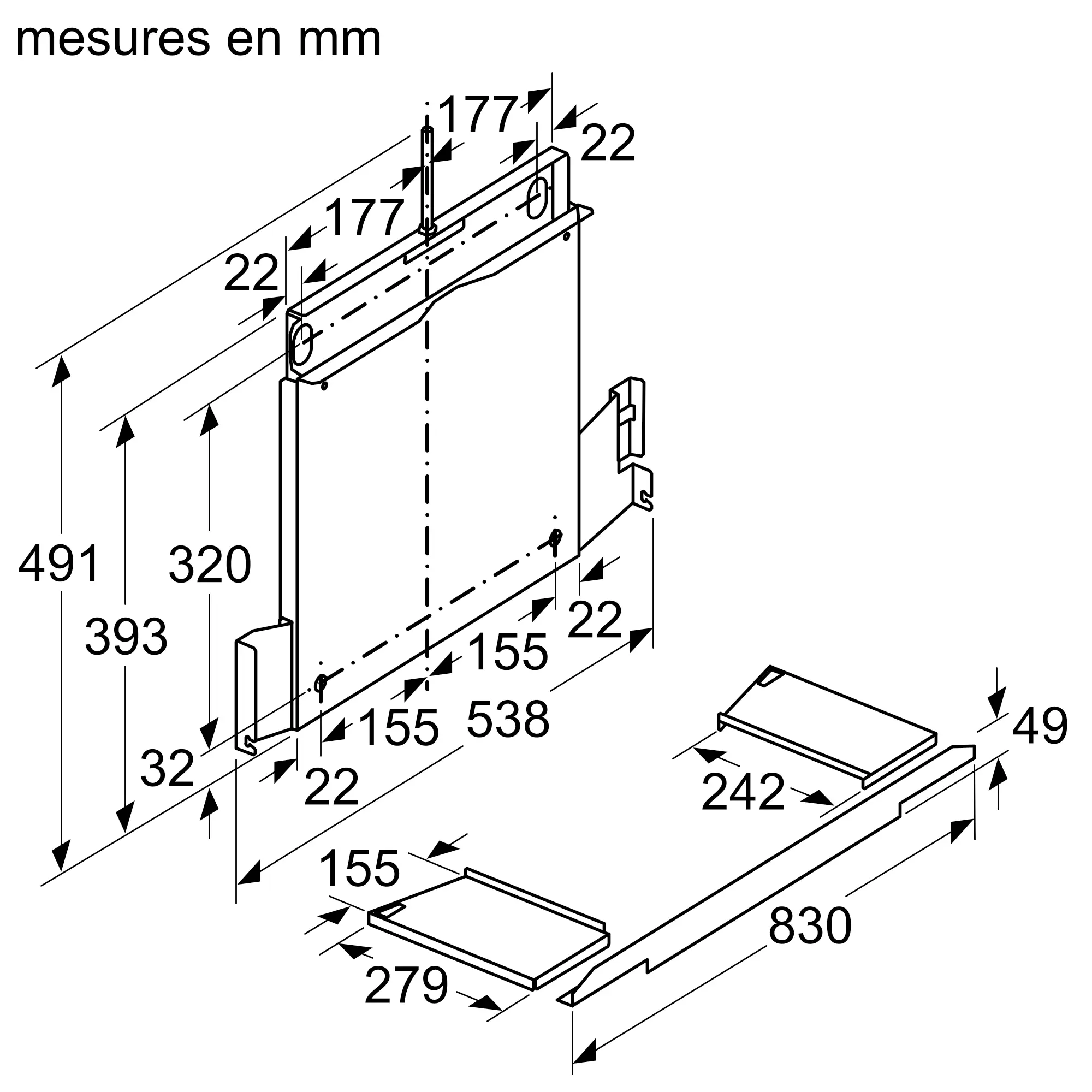 Cadre d'abaissement pour hotte télescopique de 60 cm