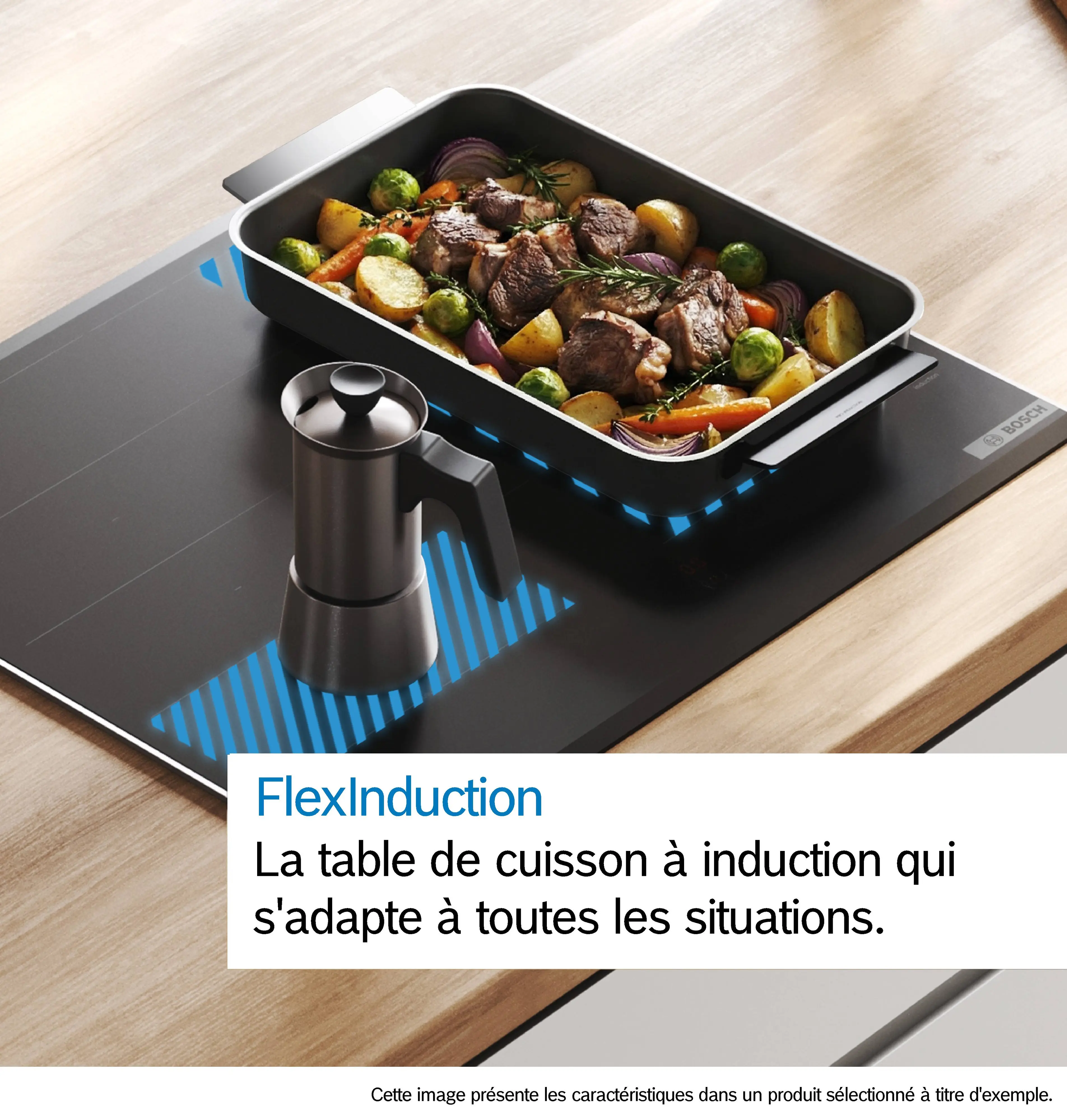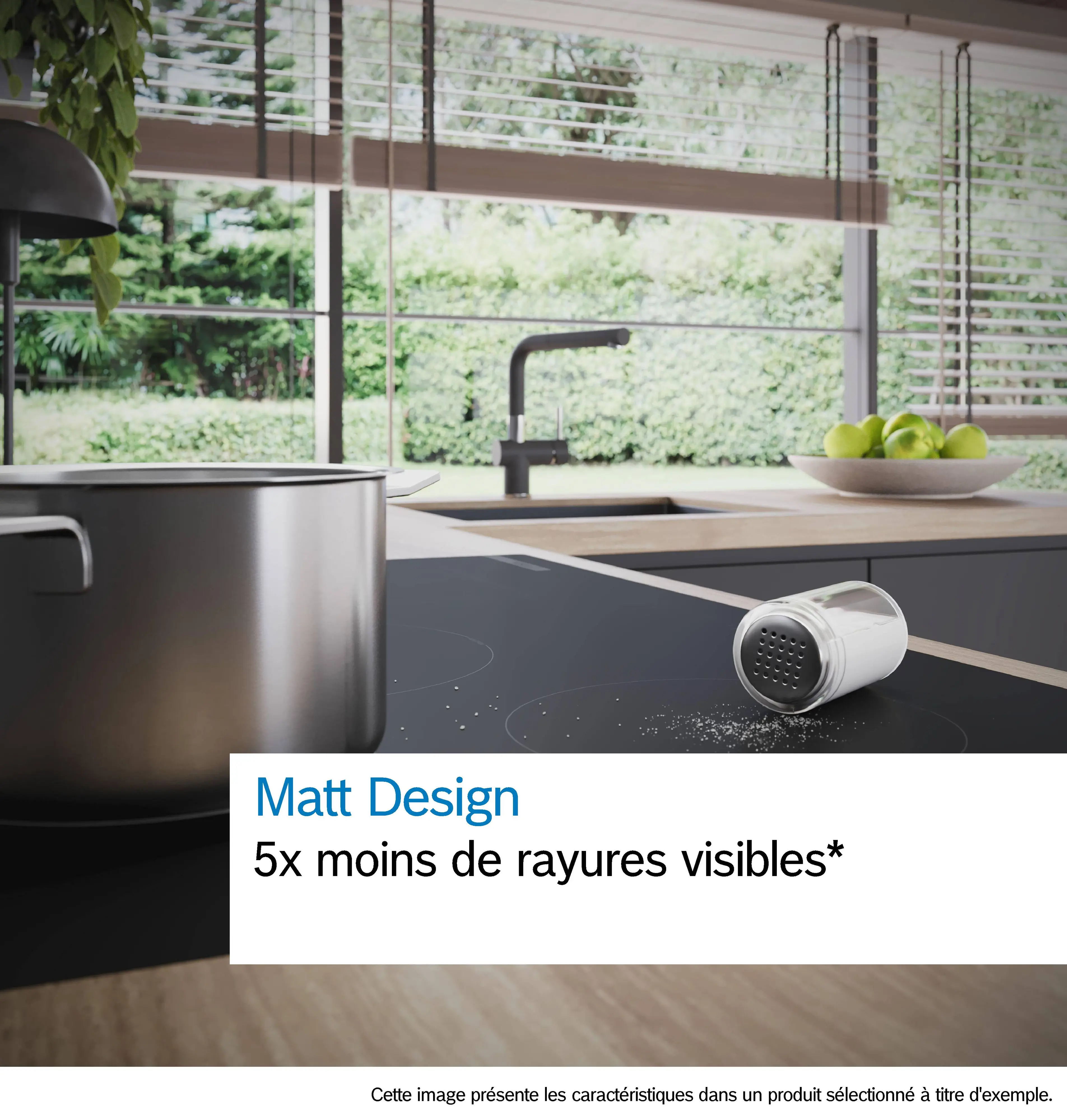 Série 8 Table de cuisson à induction avec hotte intégrée 80 cm Noir mat, A fleur dans le plan de travailPXX82BD56E