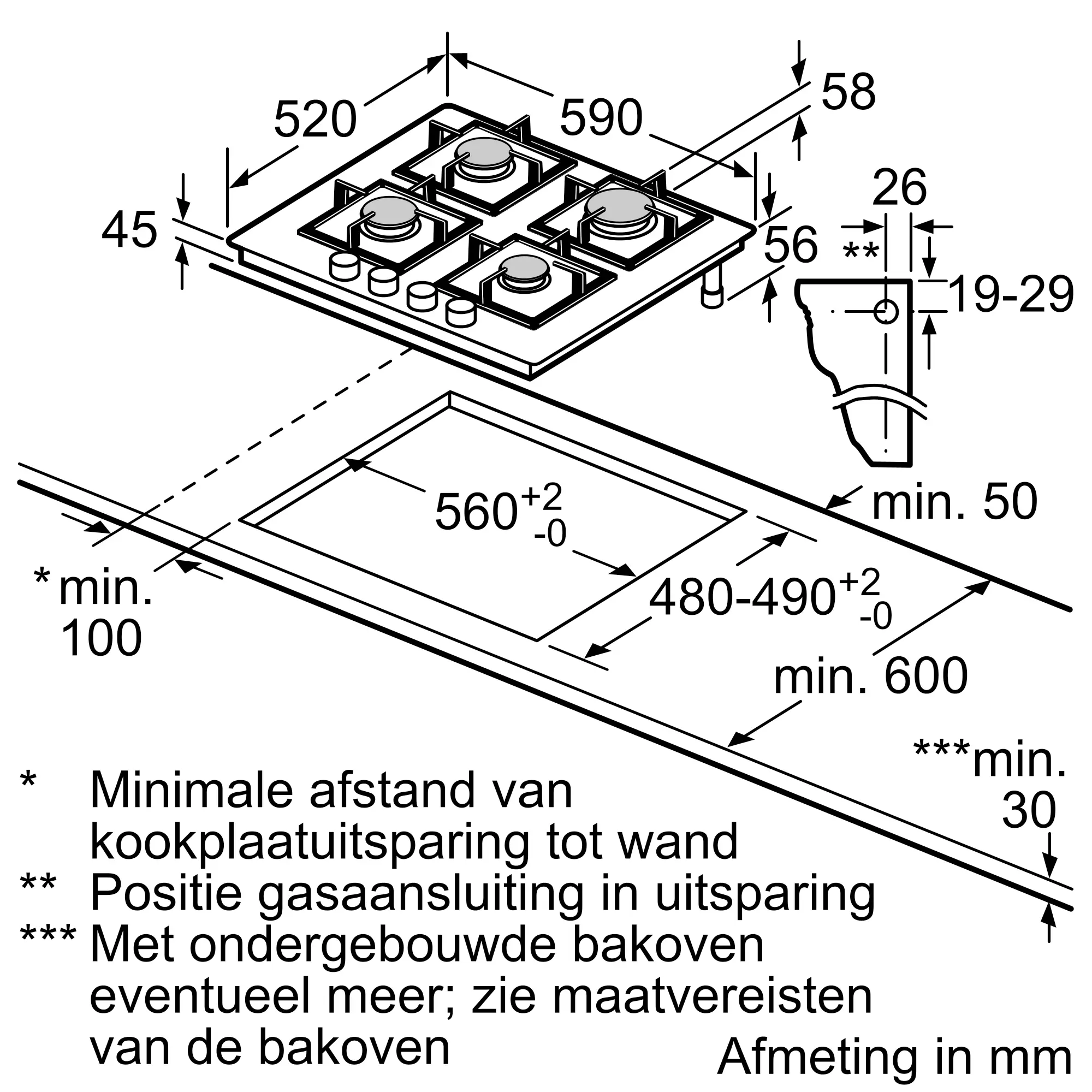 Serie 6 Gaskookplaat 60 cm Hardglas, ZwartPPP6A6B20